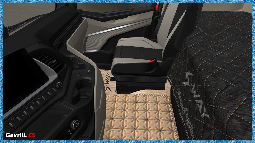 - Carpets with extra slots: Scania R NG, DAF XF Euro 6; Iveco S-way; Volvo FH4;